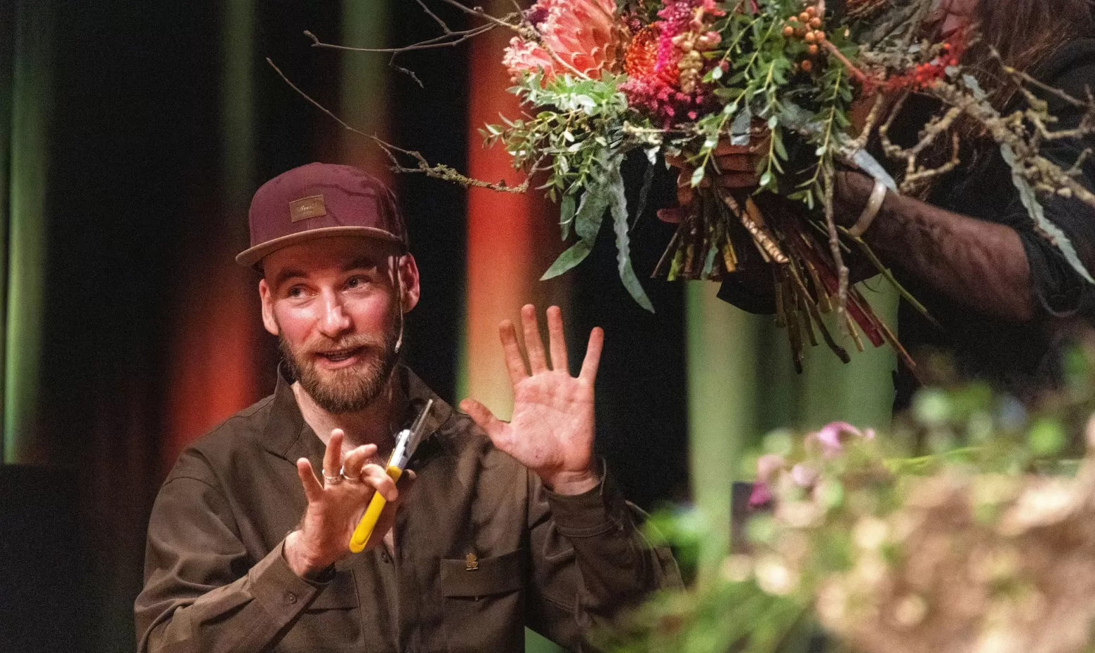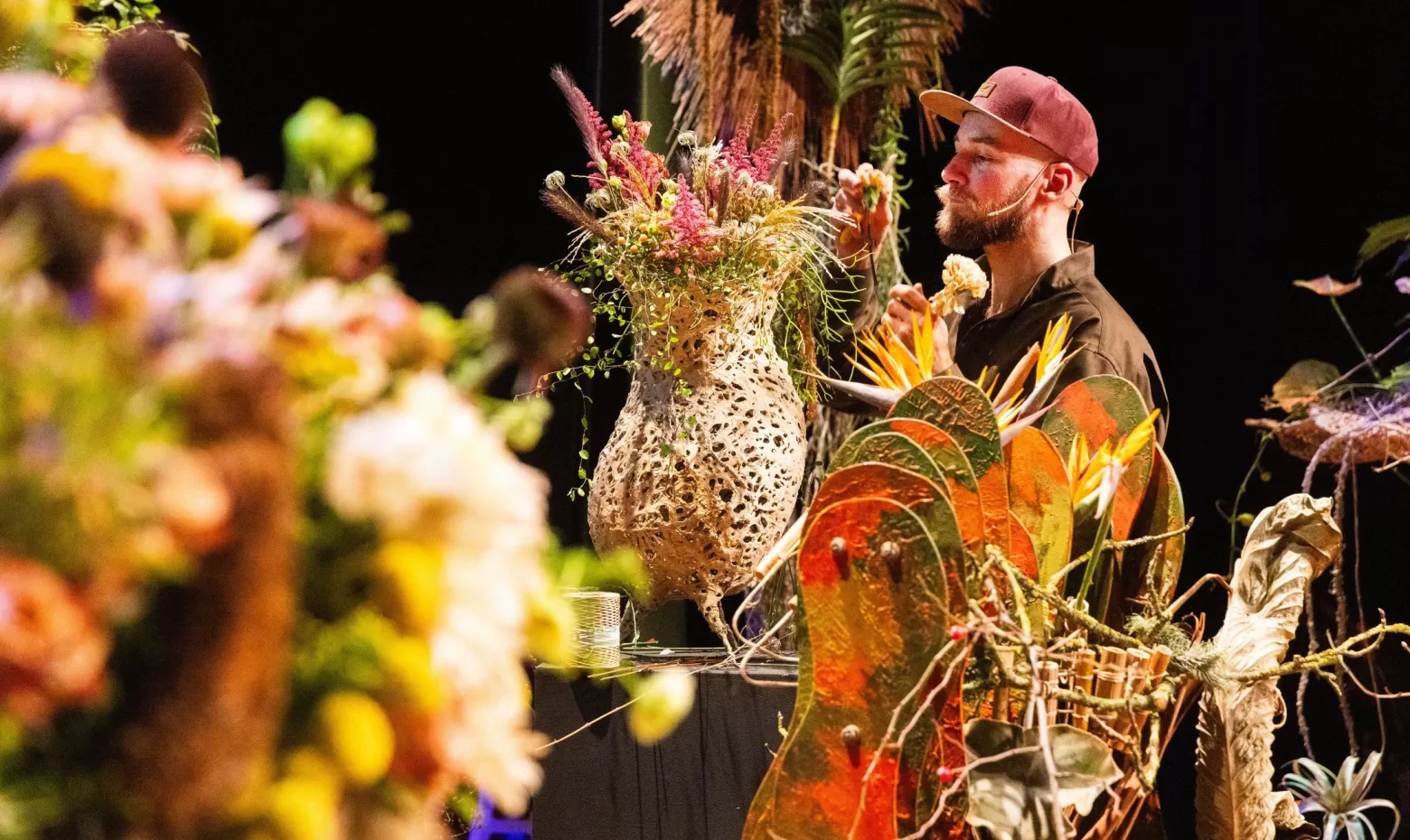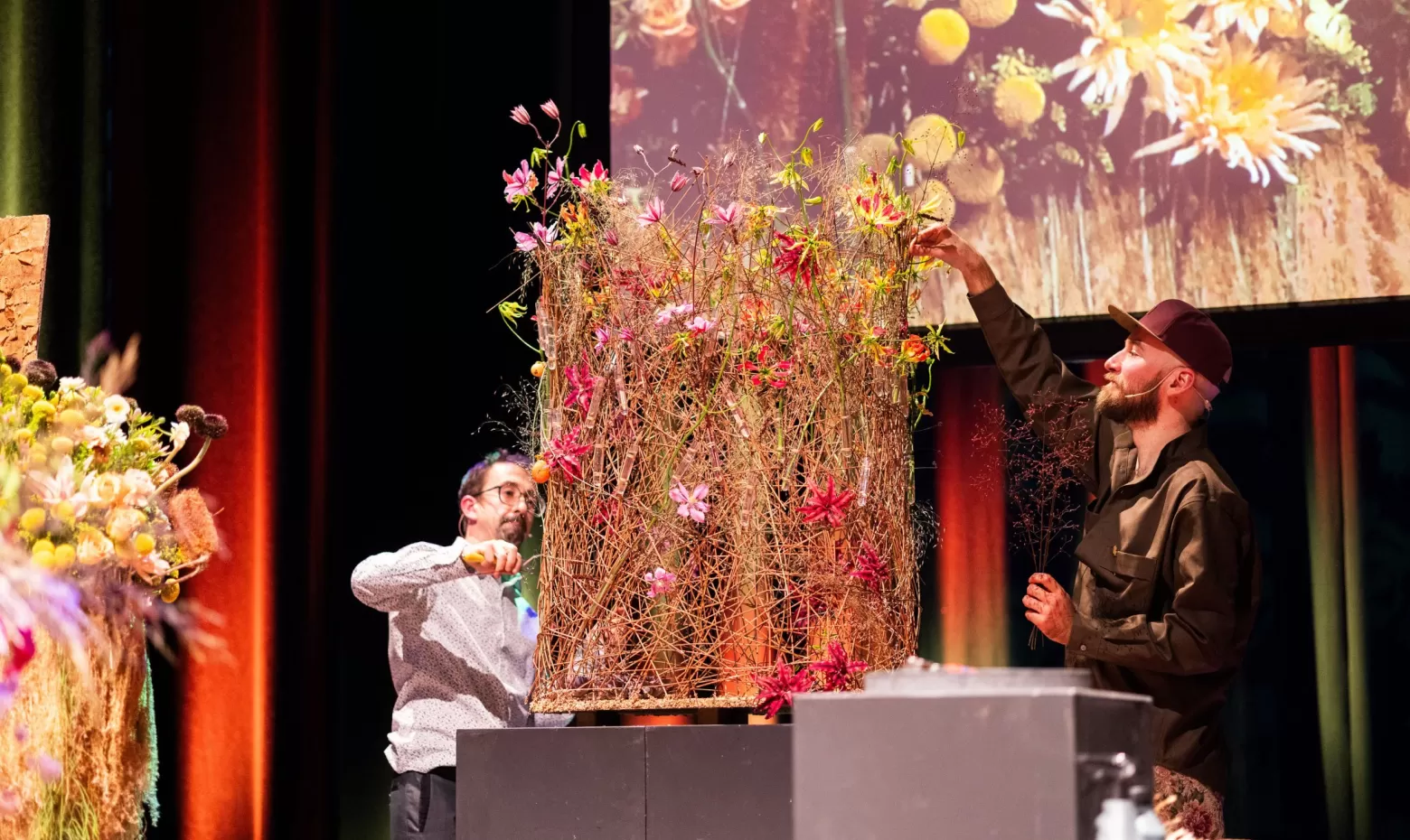 Frédéric Dupré and Mike Boerma created several impressive pieces. The on-stage chemistry was palpable: after seven years of working together, it’s no surprise they complement each other so well. Both made use of a wide selection of Marginpar flowers.